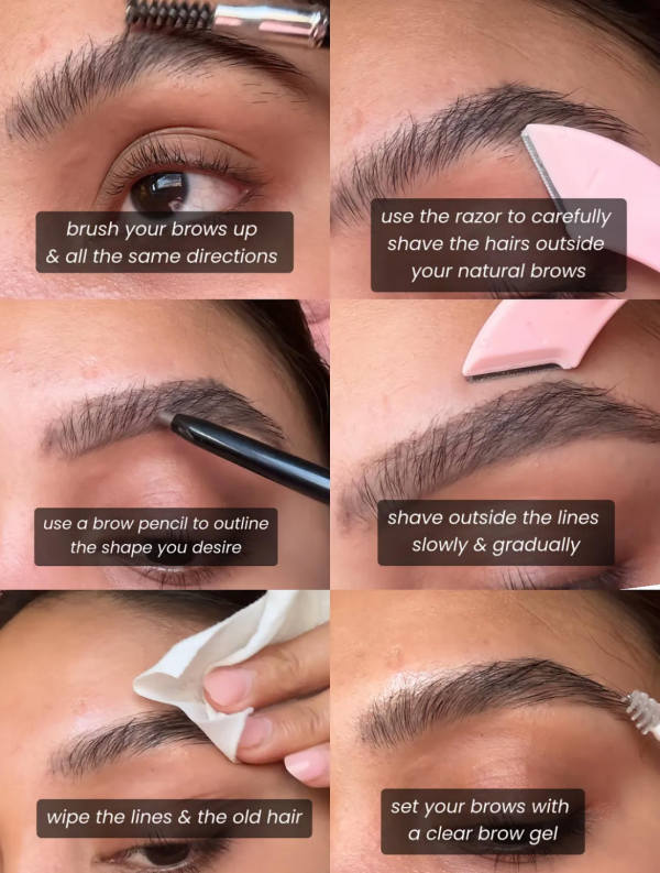 If you want a more sculpted look, lightly draw the brow shape you want using a brow pencil. This acts as a guide while you shave or pluck.