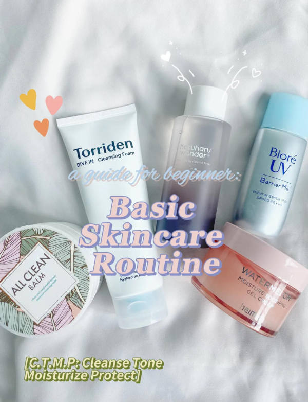 The basic skincare routine follows the C.T.M.P. method: Cleanse, Tone, Moisturize, and Protect!
