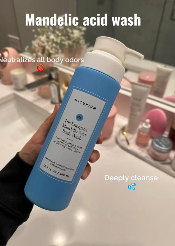 Start by using a gentle body wash with mandelic acid. This will exfoliate your skin, removing dead skin cells and keeping your skin fresh and odor-free. Mandelic acid also works wonders for neutralizing body odor while leaving your skin smooth.