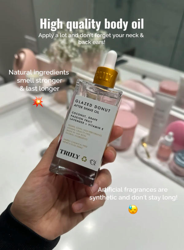 Opt for a natural body oil, as it enhances your skin's natural scent. Avoid artificial fragrances, which often fade quickly. A good body oil locks in moisture and gives your skin a luxurious, subtle fragrance.