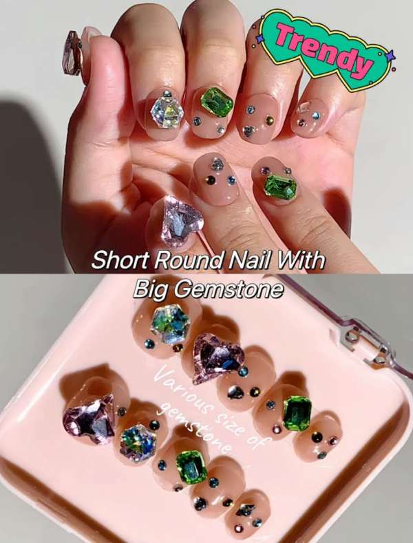 If you’re feeling stuck on what nail style to pick for your next appointment, here are some trendy Korean gemstone nail designs to inspire you!