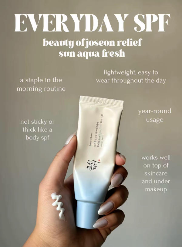 This is my everyday go-to SPF. It blends effortlessly into my skincare routine and layers well under makeup. Lightweight and comfortable, it absorbs smoothly without leaving a white cast or irritating my eyes. This one’s a staple I’ll keep reaching for!