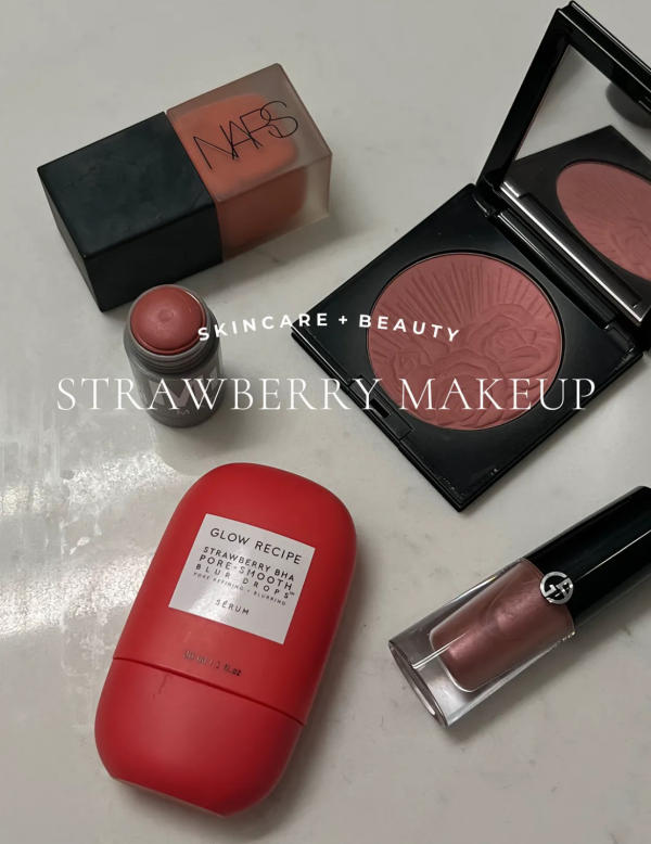 If you’re into that dewy, flushed look, here are some skincare and makeup products that help create the perfect strawberry-inspired vibe!