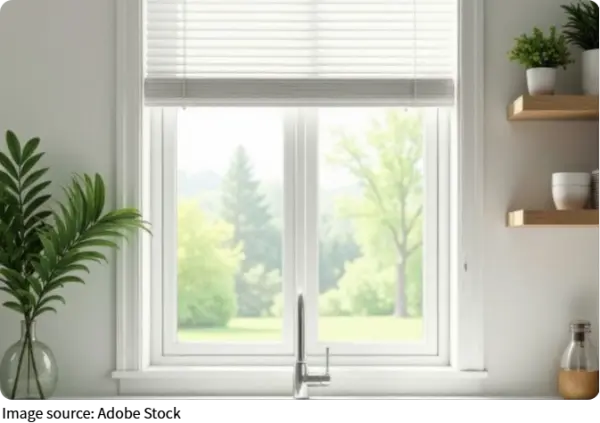 These fold neatly and follow the window's size. Roman shades are a smart choice when windows are close to the cooking zone, as they reduce bulk and stay safely away from heat sources.
