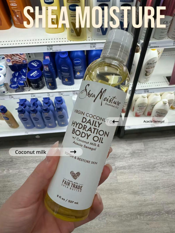 Known for its signature cocoa butter formula, this oil is excellent for improving skin texture and elasticity. It leaves the skin feeling silky smooth and adds a subtle glow. Many people also enjoy its comforting cocoa fragrance, which feels warm and cozy during the winter months.
