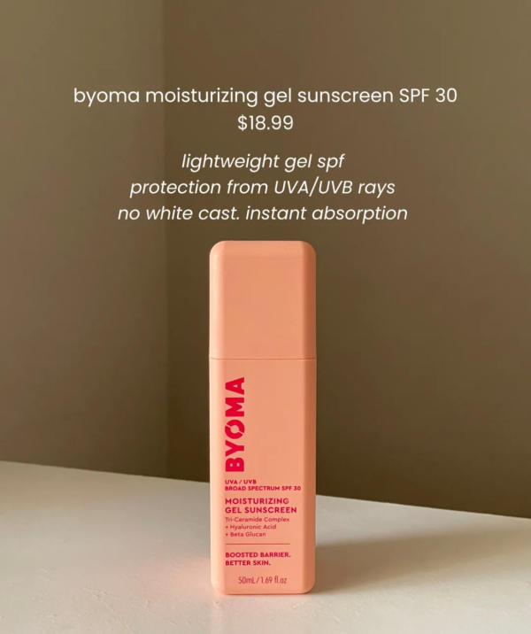 2. Byoma Moisturizing Gel Sunscreen SPF 30 – $18.99