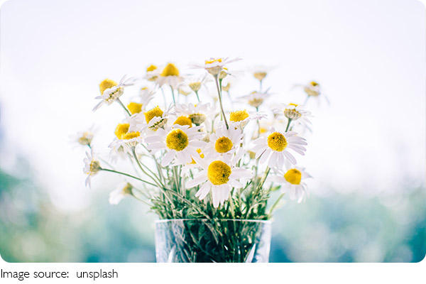 Roman chamomile is a perennial plant, known for its gentle aroma, while German chamomile, an annual, contains higher concentrations of soothing “blue essential oil” that supports allergy relief. Despite its slightly stronger scent, chamomile is calming and often used in herbal medicine. Caring for chamomile is straightforward—similar to daisies. Place the flowers in a clean vase with about two-thirds water, optionally adding plant nutrients. Trim excess leaves so the stems are clean before arranging. Once set, these blooms brighten any room, creating a lively, garden-like feel right at home.