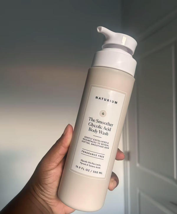 Next, cleanse your skin with a glycolic acid body wash. This wash helps brighten the skin, smooth rough patches, and maintain soft, healthy skin no matter the season. It’s perfect for keeping your glow consistent all year.