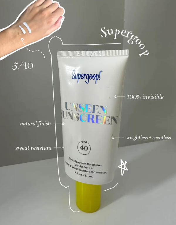 This sunscreen has a cult following, but for me, it was a bit of a mixed experience. The Supergoop! Unseen Sunscreen SPF 40 provides excellent sun protection and feels weightless on the skin, making it great for days when I go makeup-free. However, it didn't perform well under foundation — it caused pilling and separation, which made my makeup look patchy.