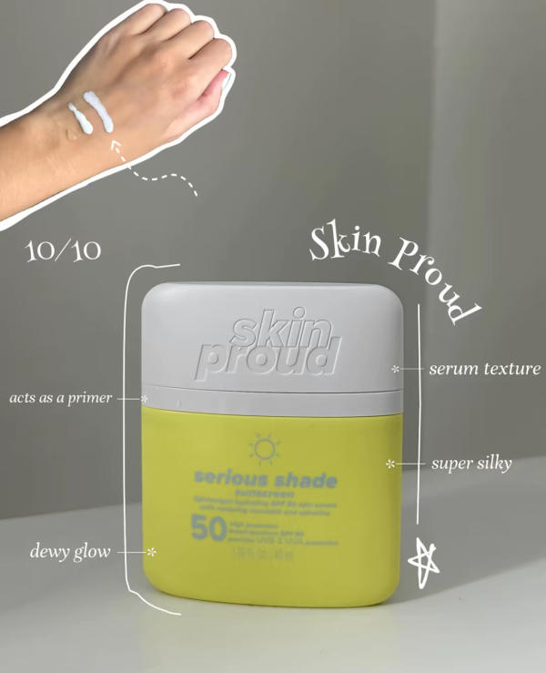 A new favorite that quickly became my top pick! The Skin Proud Serious Shade Sunscreen SPF 50 feels more like a hydrating serum than a traditional sunscreen. Its silky, lightweight texture glides on smoothly and leaves a dewy finish that doubles as a perfect base for makeup.