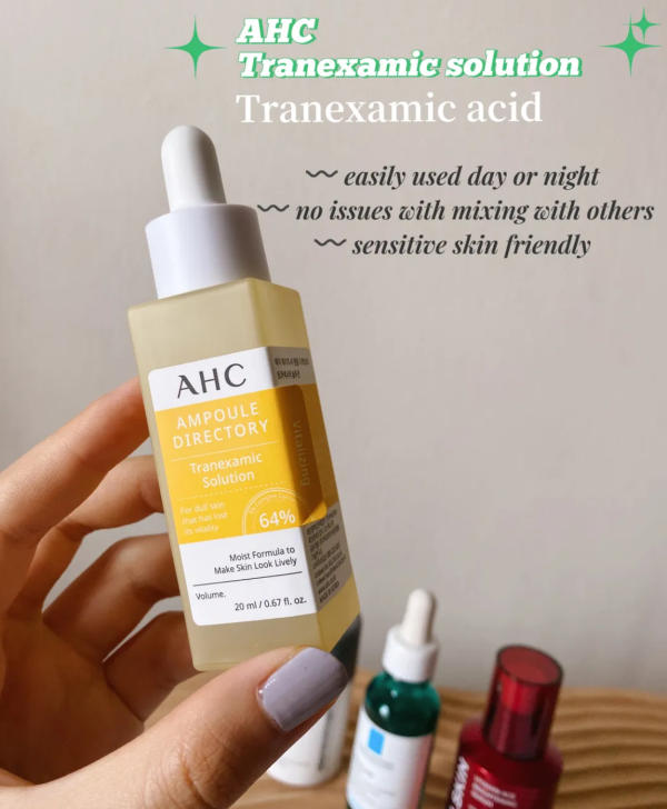 Tranexamic acid is incredibly gentle but powerful when it comes to reducing pigmentation. It works by slowing down the transfer of melanin to the upper layers of the skin, helping tone irregularities fade gradually. It's easy to pair with other actives and feels calming thanks to supporting ingredients that soothe and protect the skin barrier.