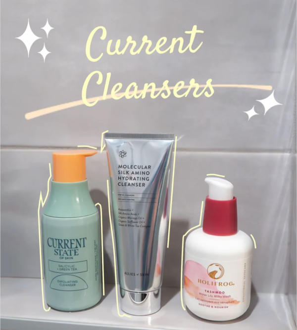 Having a versatile cleanser lineup helps tailor your routine to your skin's needs each day. Allies of Skin provides antioxidant-rich foaming hydration, Holifrog Tashmoo Water Lilly offers gentle milky cleansing for sensitive skin, and Current State of Skin delivers mild exfoliation with salicylic acid and green tea. Together, these options ensure your skin stays clean, balanced, and healthy, no matter the day!