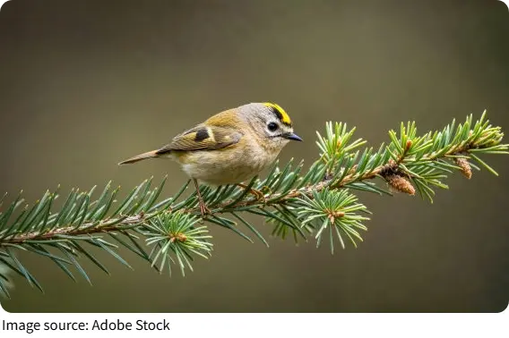 Tiny Size for Stealth: The Goldcrest's small size is both an asset and a challenge. It allows the bird to move quickly and stealthily through thick foliage, staying out of sight of predators. Being so small, it's able to hide in places where larger birds cannot follow, which is especially helpful when it's hunting for insects or avoiding predators like sparrowhawks.