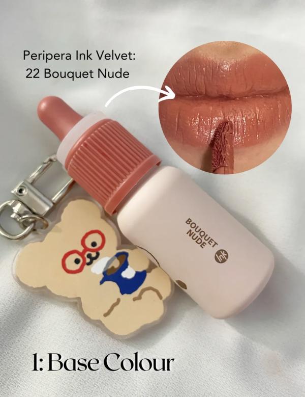 I start by applying Peripera Ink Velvet. Since my lips are naturally pigmented, this step helps tone them down and creates a softer base so the other shades stand out more. Think of this as erasing the lip color just enough to let the ombré effect shine. For naturally pale lips, this step can be skipped without any issues.