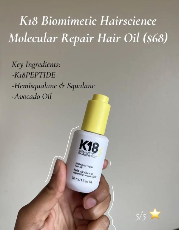 2. K18 Biomimetic Hairscience Molecular Repair Hair Oil