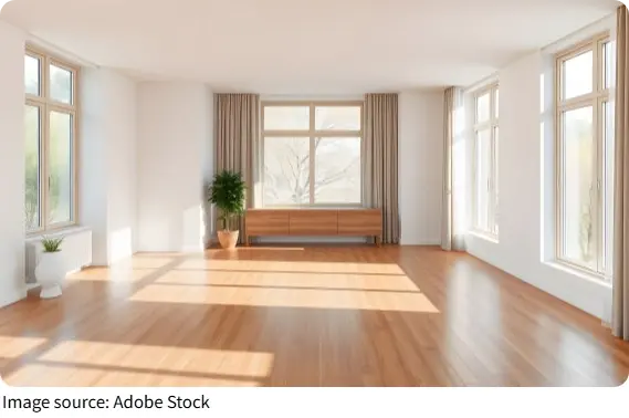 Want the look of wood without the price tag? Laminate delivers. It's made with a photographic layer that mimics wood, stone, or even tile, topped with a protective finish. Laminate is budget-friendly and easier to install, often using a click-and-lock system.