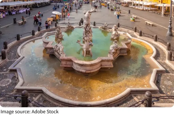2. Fontana del Moro – Located at the southern end of the square, this fountain features a Moorish figure and dolphins, designed by Giovanni Bologna and later completed by Gian Lorenzo Bernini.